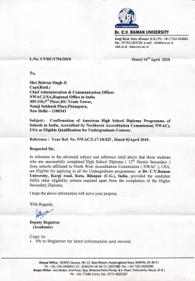 Approvals in Chhattisgarh enable students with NWAC high school credentials to pursue further studies.