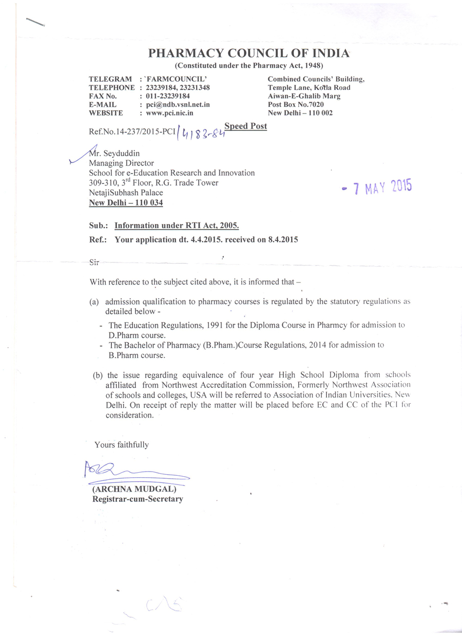 PHARMACY COUNCIL OF INDIA 04.05.2015