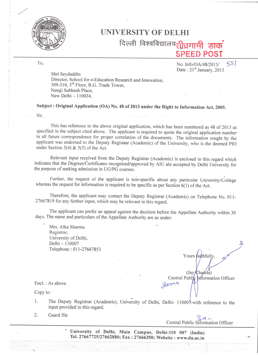 Universities and institutions in the National Capital Territory have recognised NWAC certificates for higher studies.