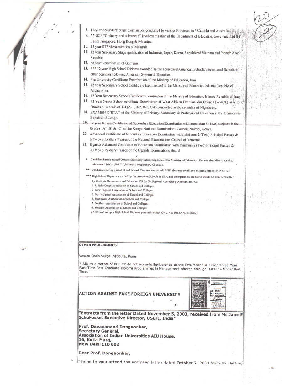 Educational certificates of NWAC, USA are widely recognised and accepted by various national and state universities and education boards across India. Extracts from letters of such universities/boards are available state-wise below.