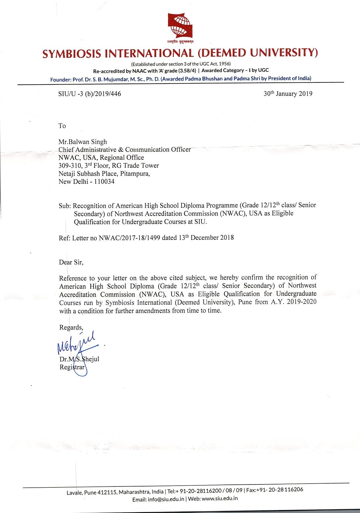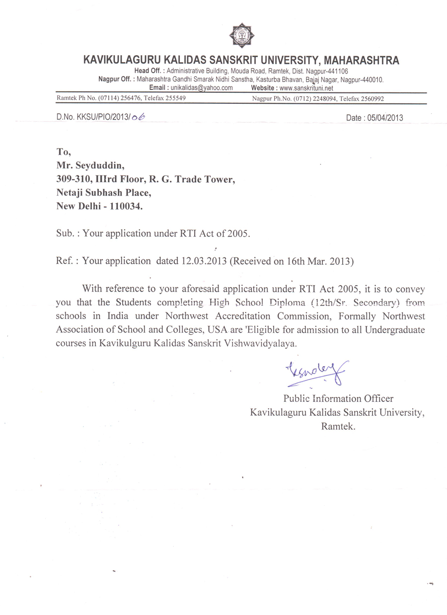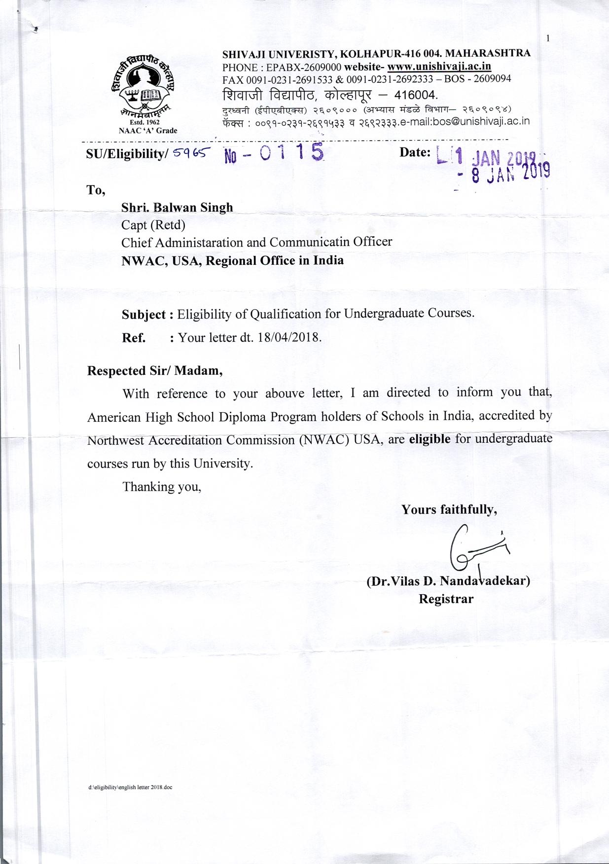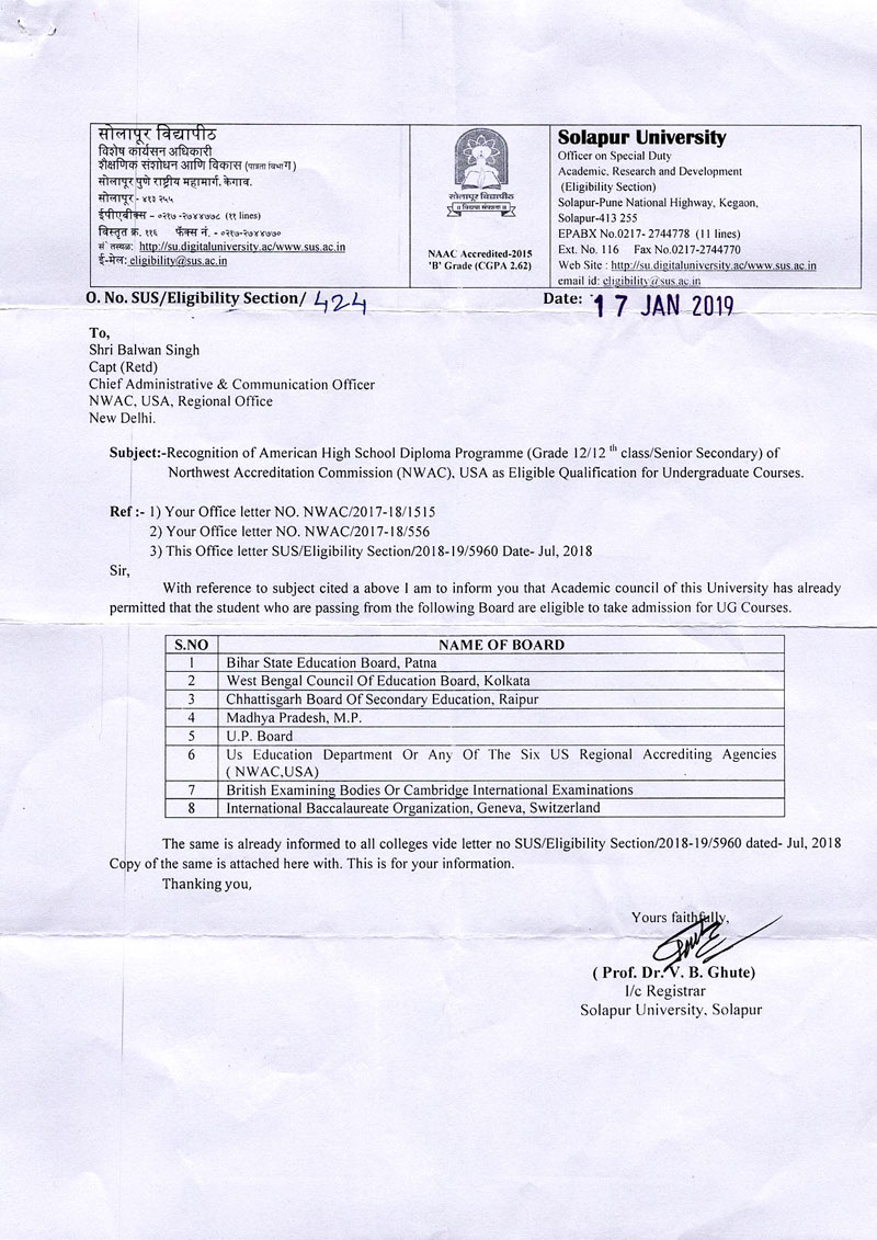 Educational certificates of NWAC, USA are widely recognised and accepted by various national and state universities and education boards across India. Extracts from letters of such universities/boards are available state-wise below.