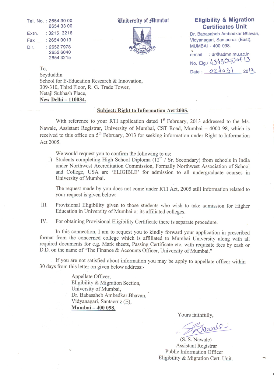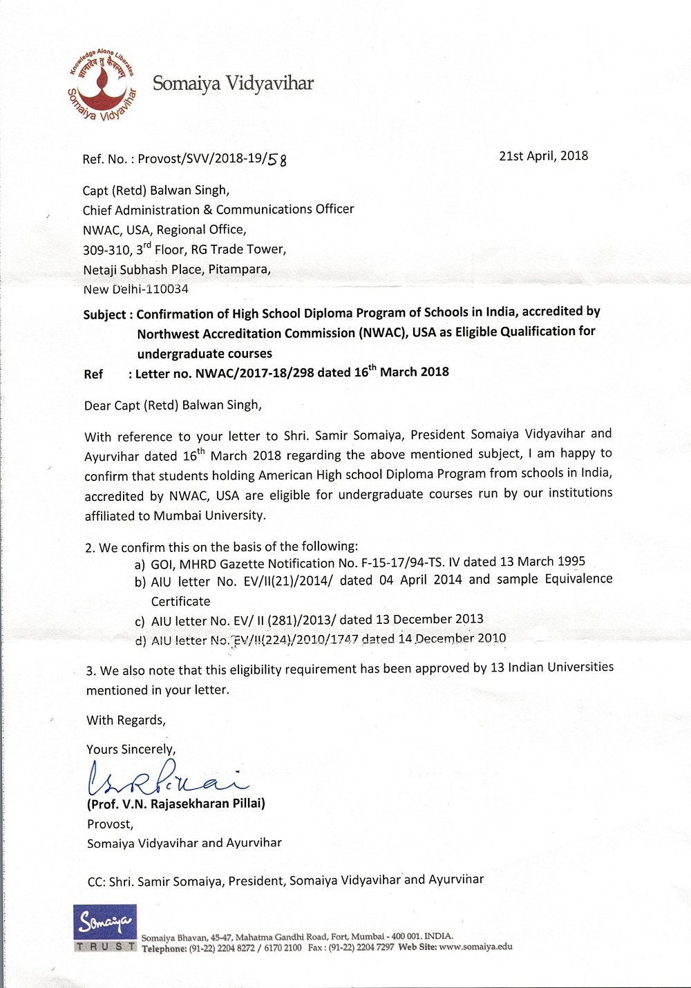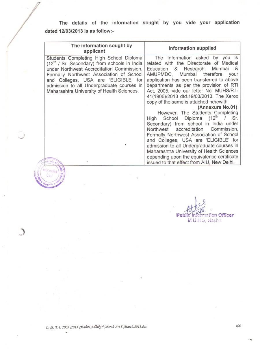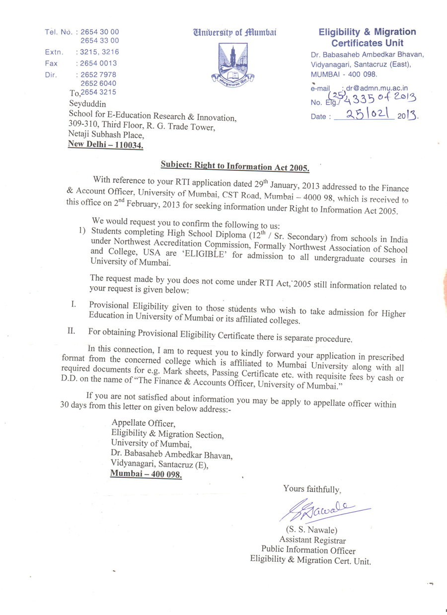 Educational certificates of NWAC, USA are widely recognised and accepted by various national and state universities and education boards across India. Extracts from letters of such universities/boards are available state-wise below.