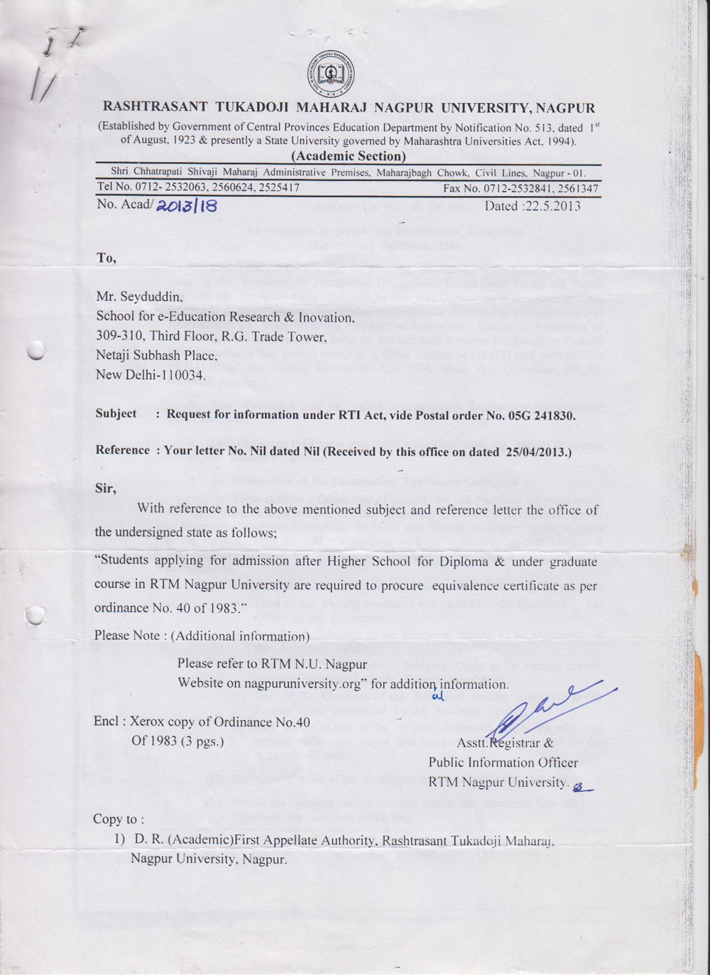 TUKADOJI UNIVERSITY NAGPUR UNIVERSITY, NAGPUR