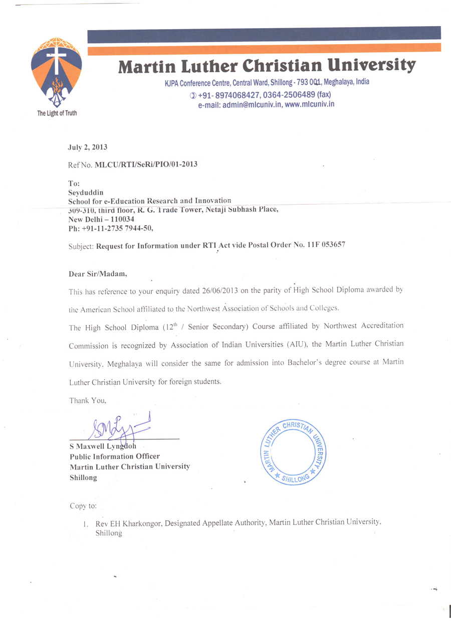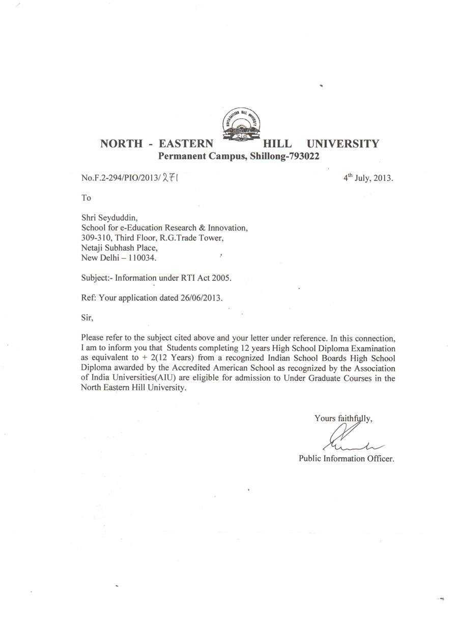 Educational certificates of NWAC, USA are widely recognised and accepted by various national and state universities and education boards across India. Extracts from letters of such universities/boards are available state-wise below.