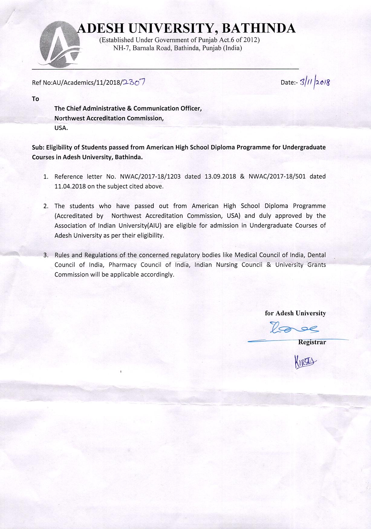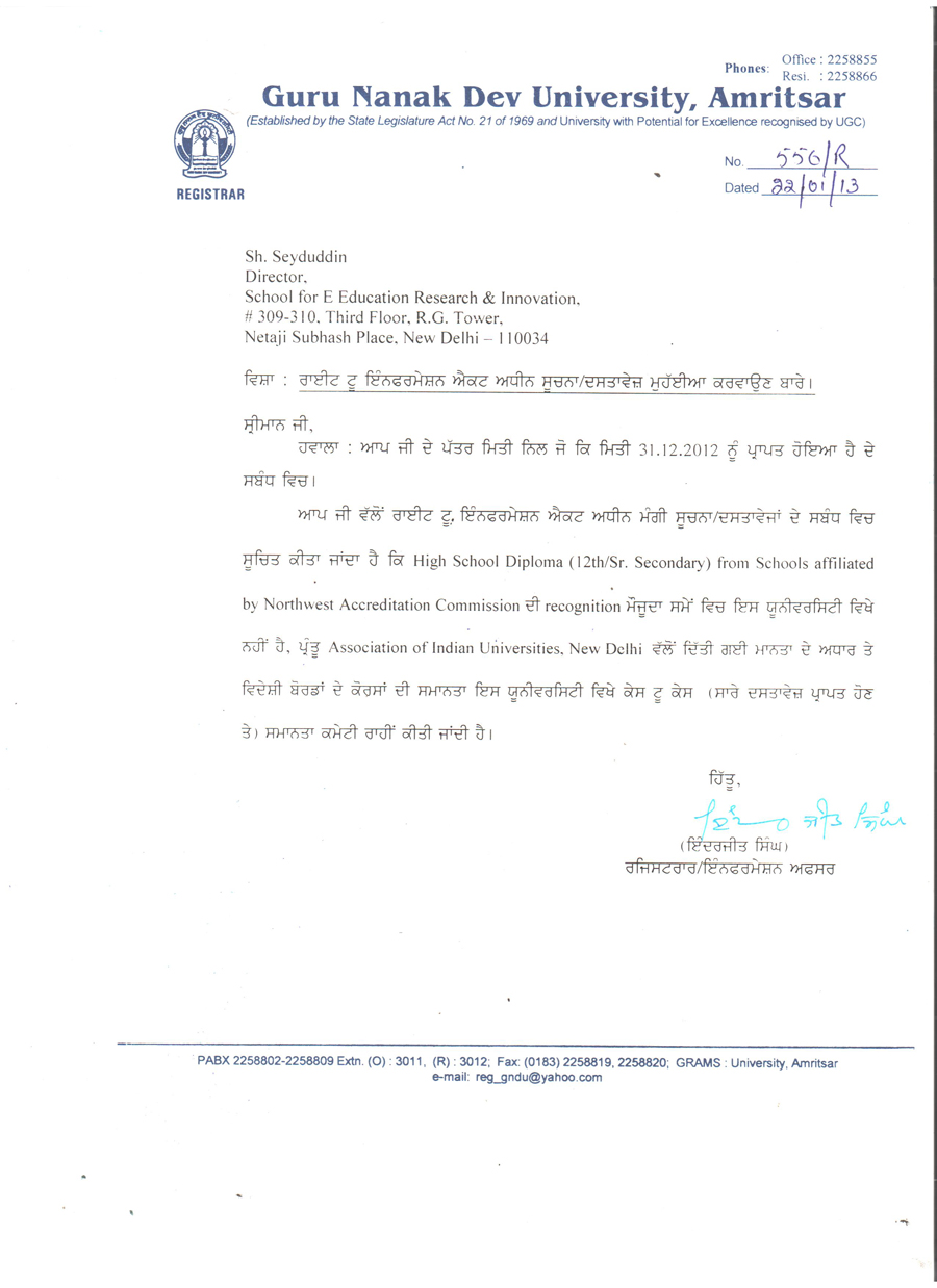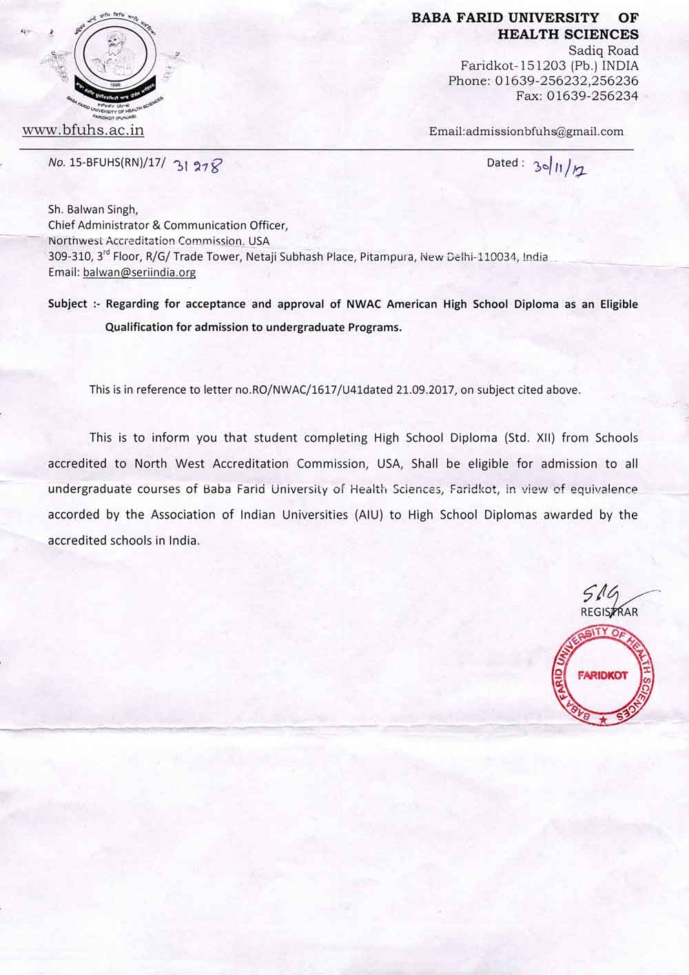 Educational certificates of NWAC, USA are widely recognised and accepted by various national and state universities and education boards across India. Extracts from letters of such universities/boards are available state-wise below.