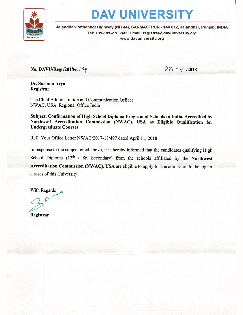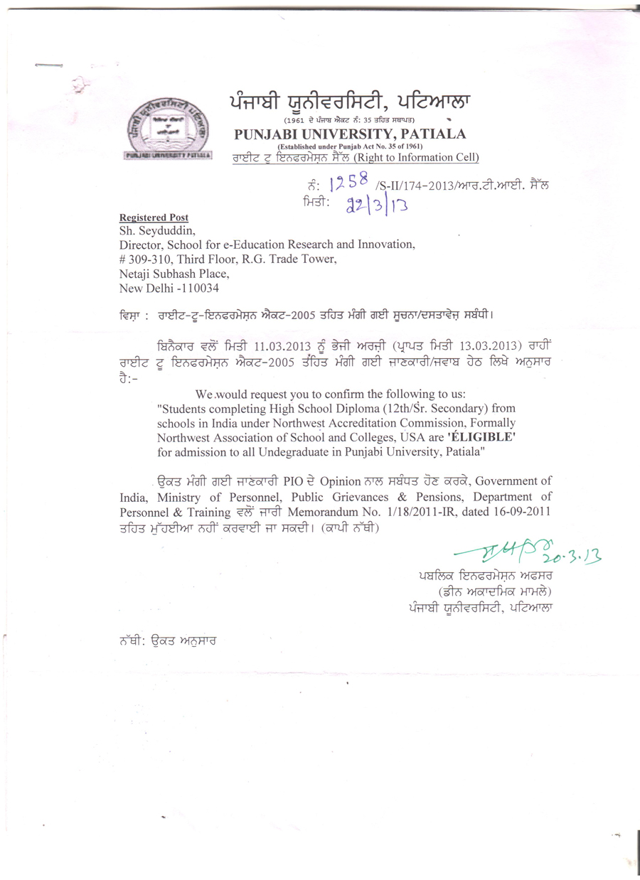 Educational authorities in Punjab recognise NWAC credentials for admissions to approved programs.