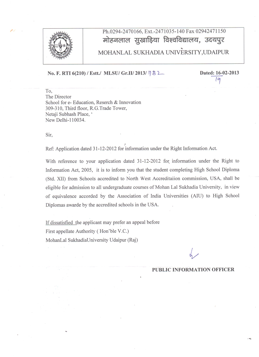 MOHANLAL SUKHADIA UNIVERSITY, UDAIPUR