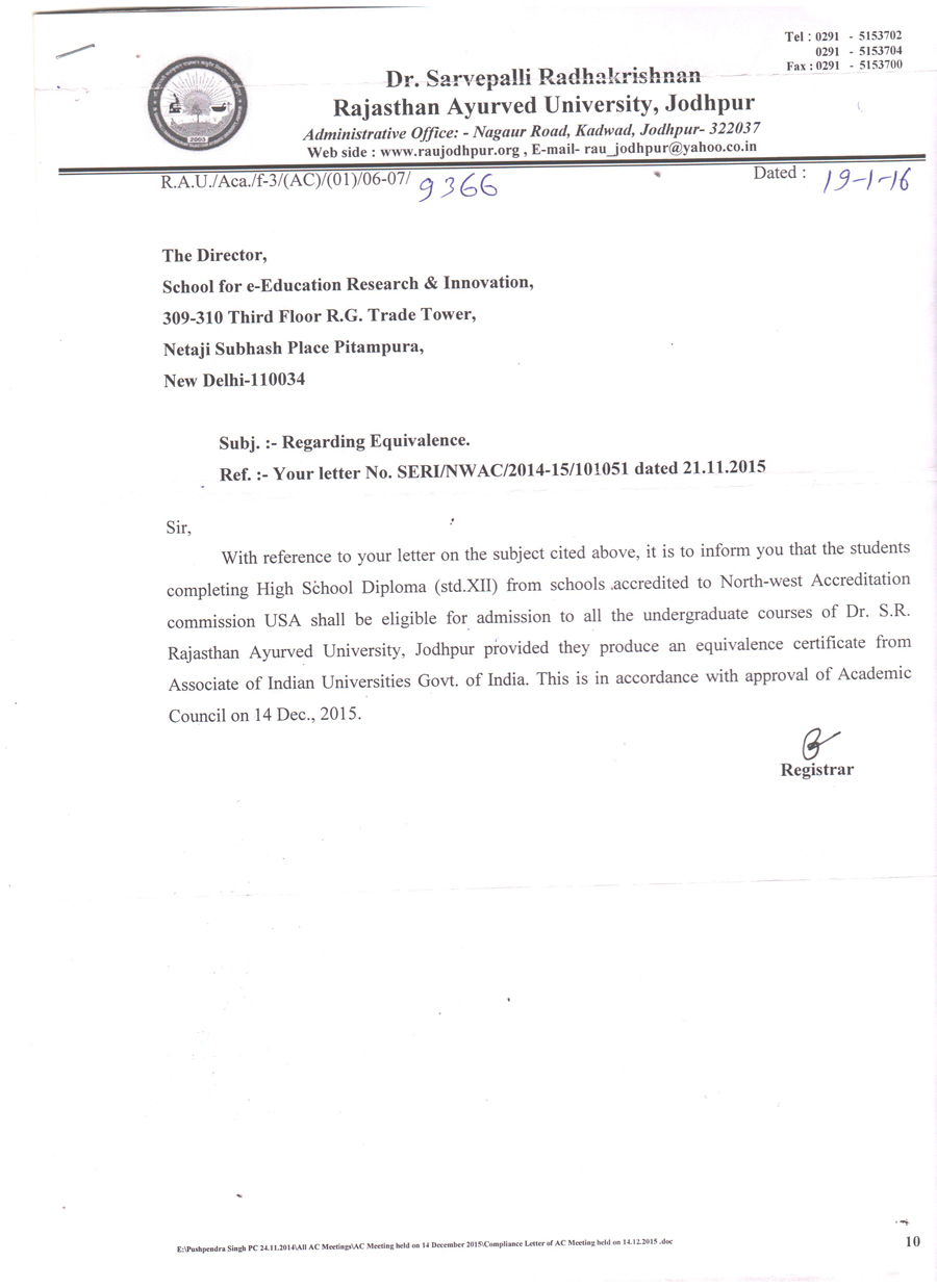 RAJASTHAN AYURVED UNIVERSITY, JODHPUR