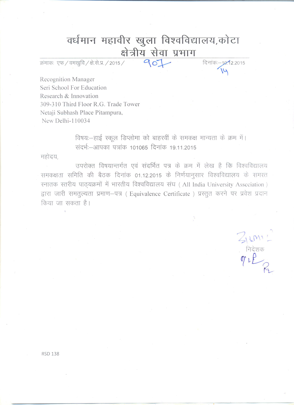 Universities and councils in Rajasthan have processed admissions for eligible NWAC graduates.