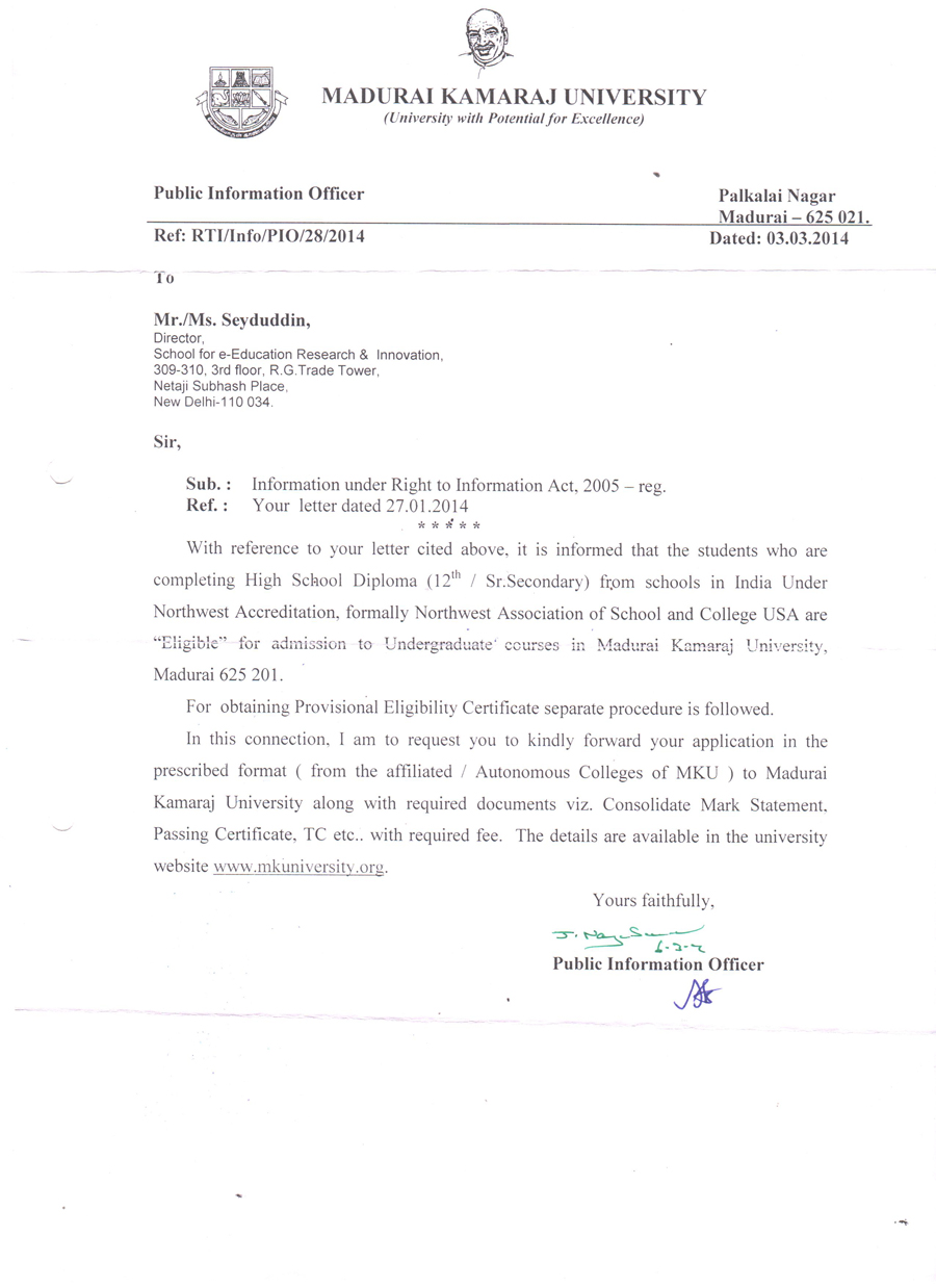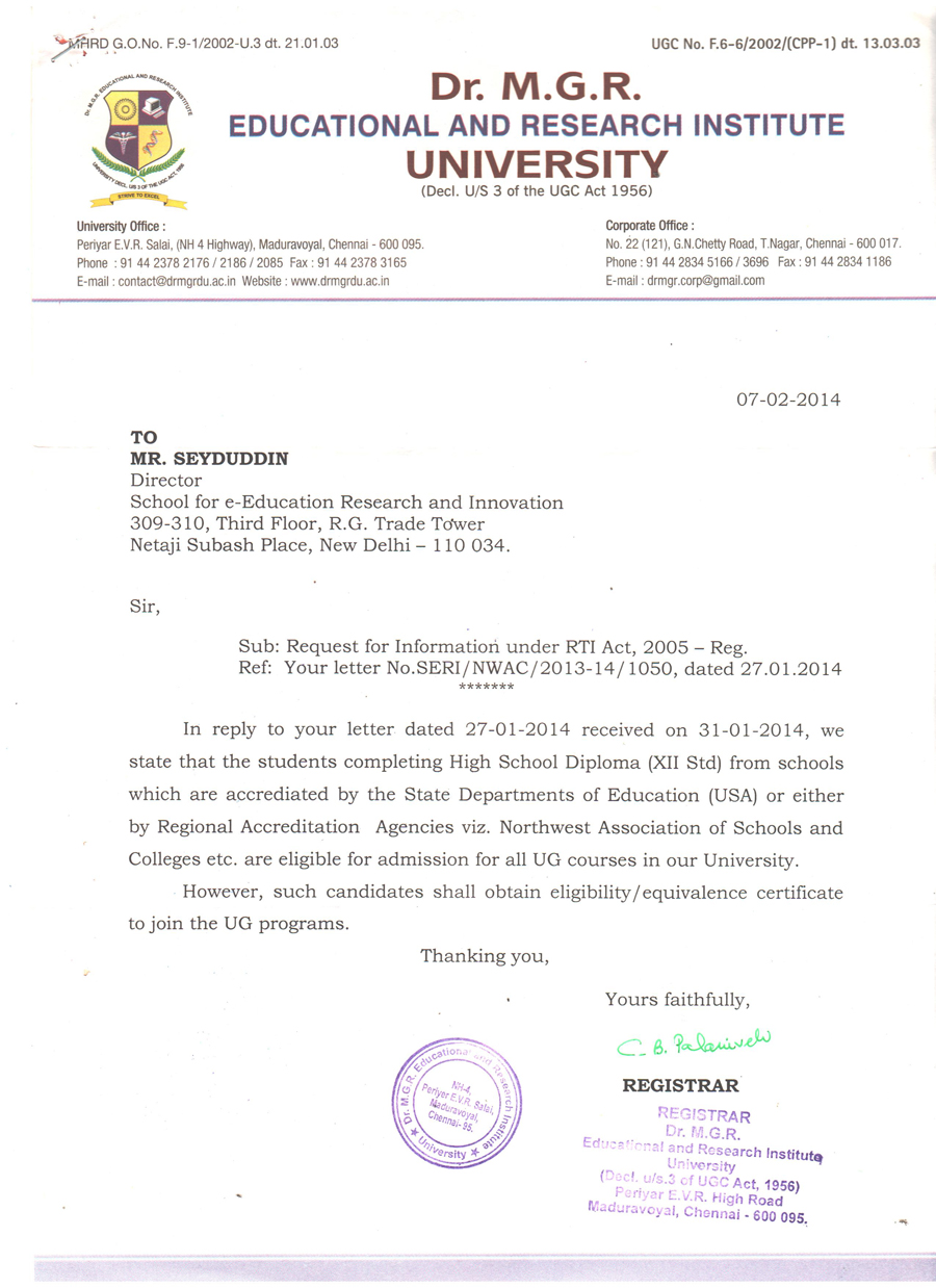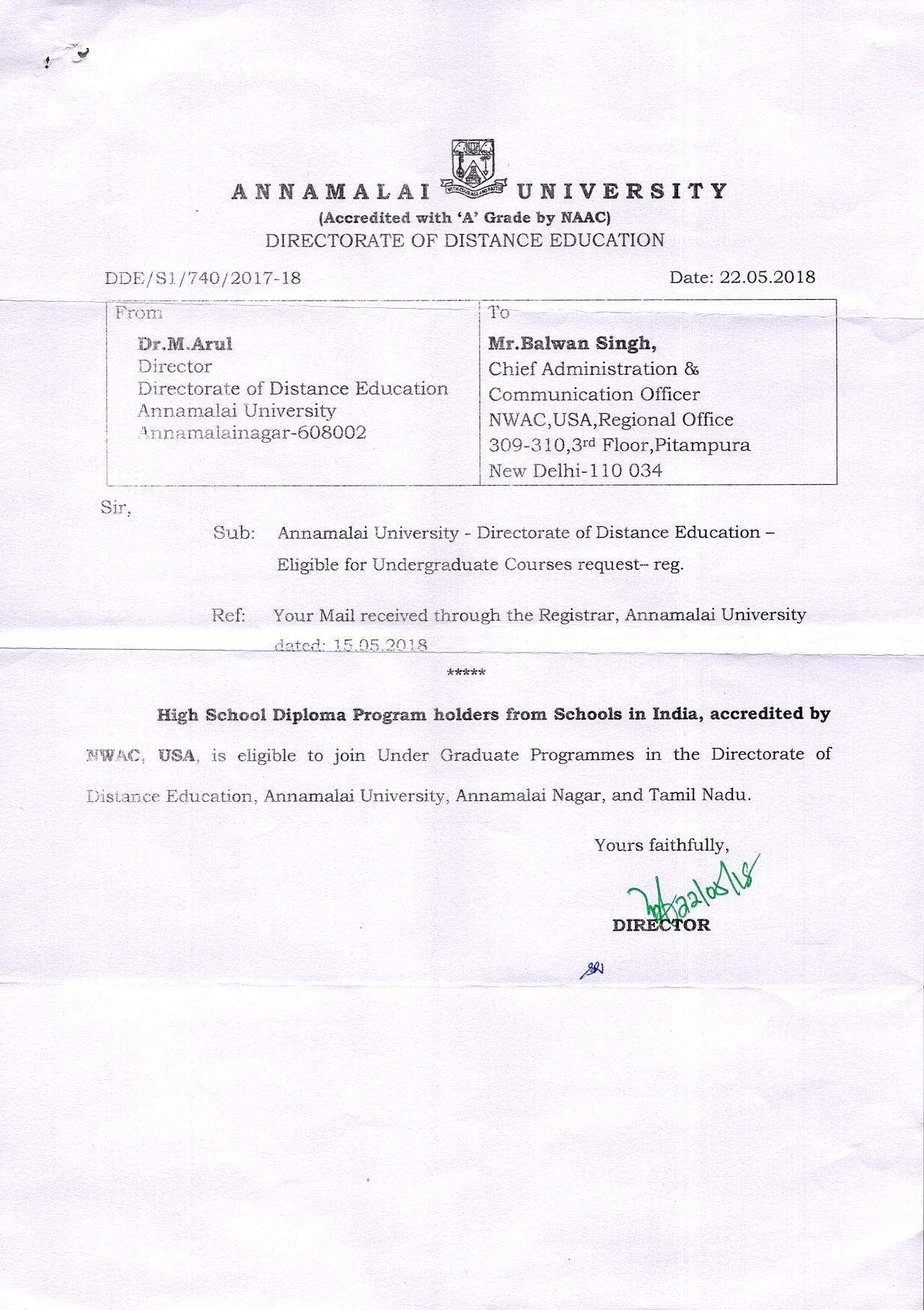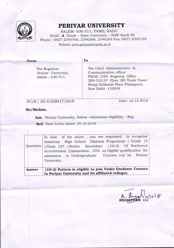 Educational certificates of NWAC, USA are widely recognised and accepted by various national and state universities and education boards across India. Extracts from letters of such universities/boards are available state-wise below.