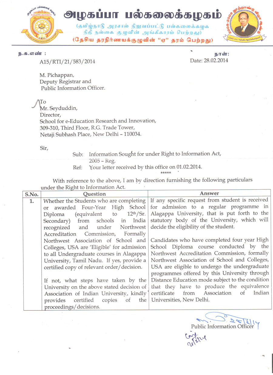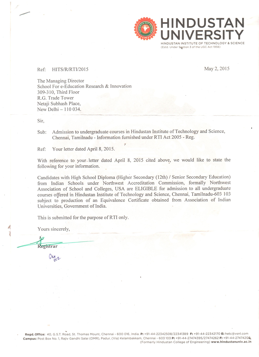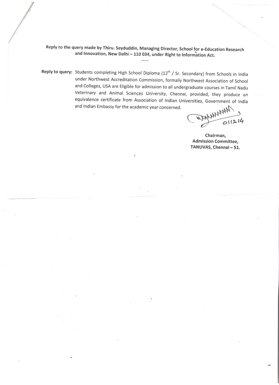 Universities and boards in Tamil Nadu have considered NWAC high school credentials for admissions.