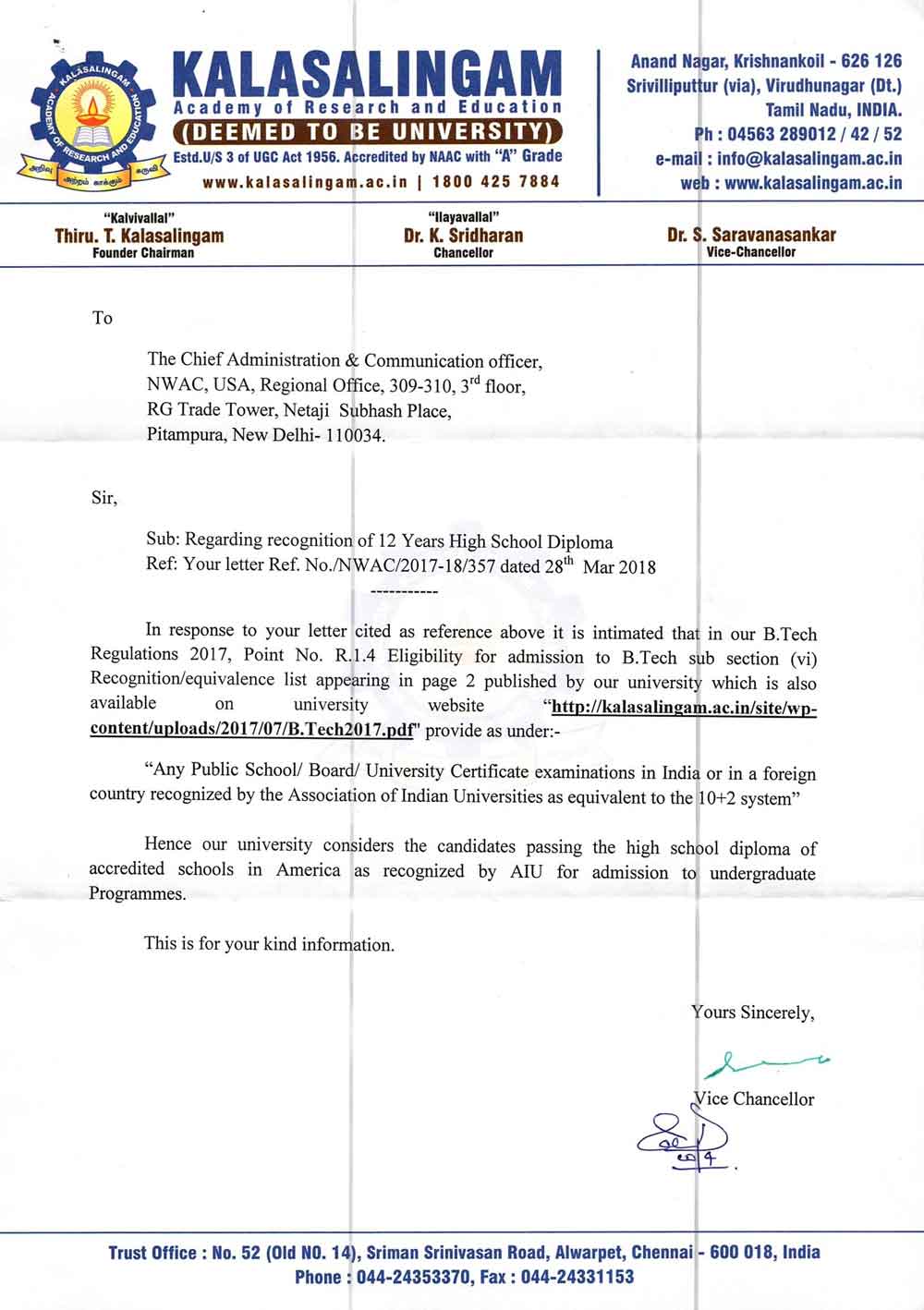 KALASALINGAM ACADEMY OF RESEARCH AND EDUCATION