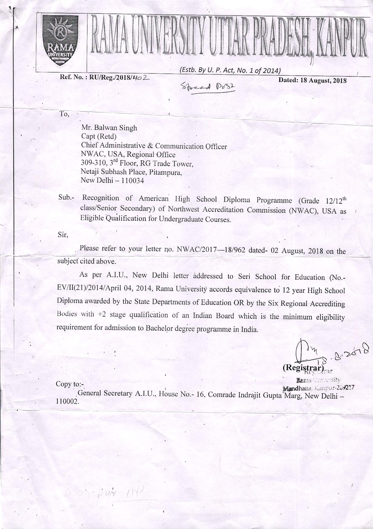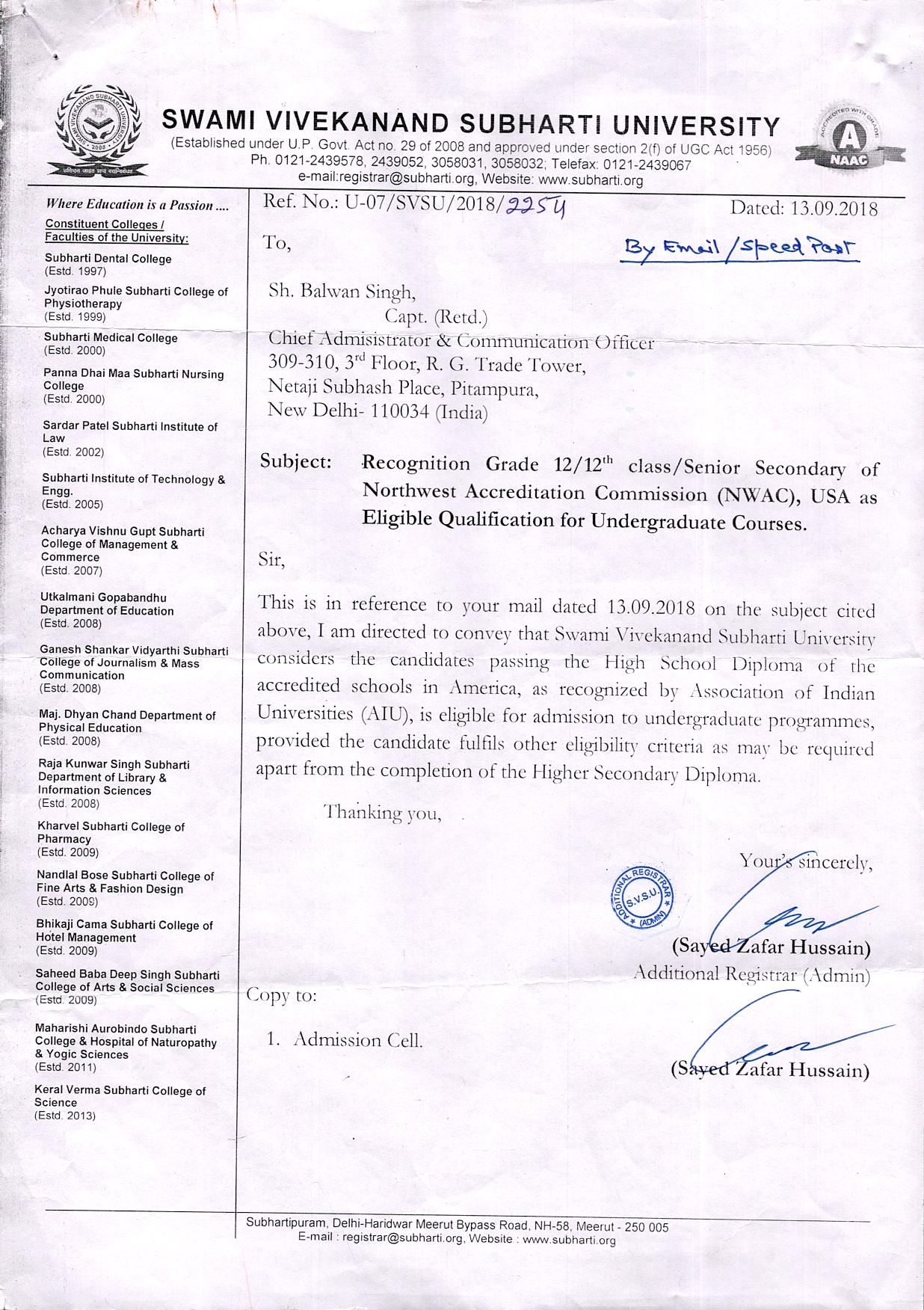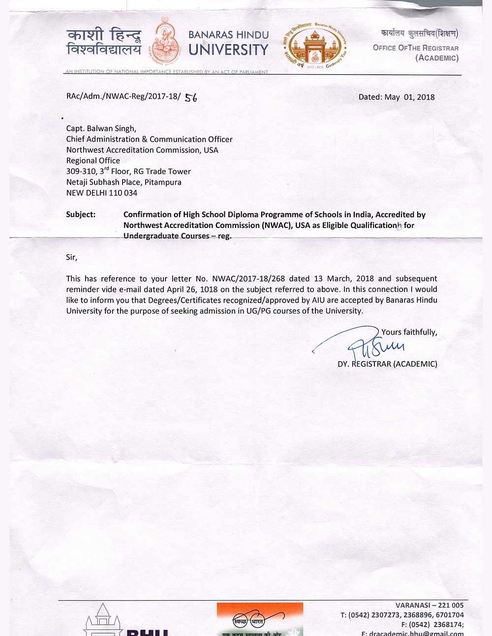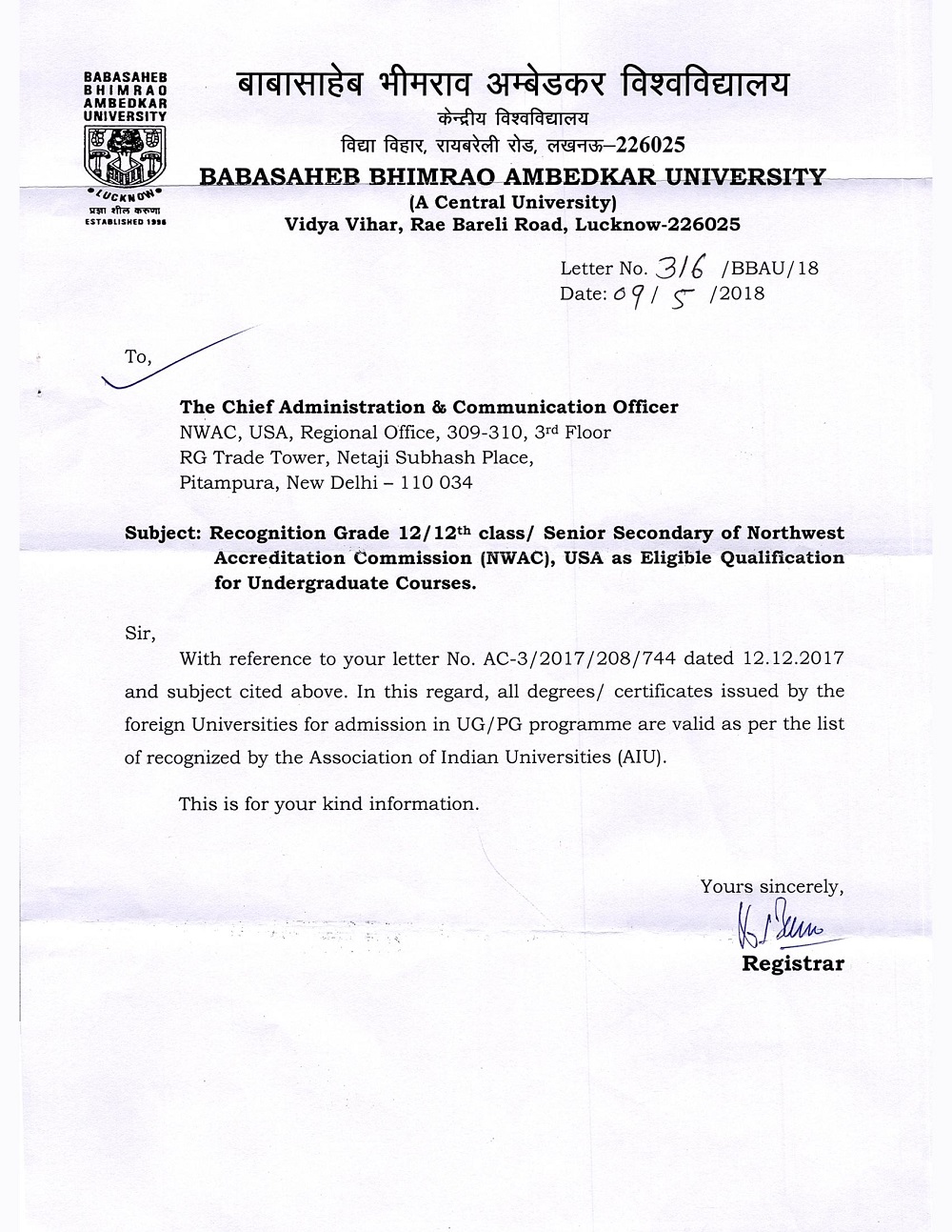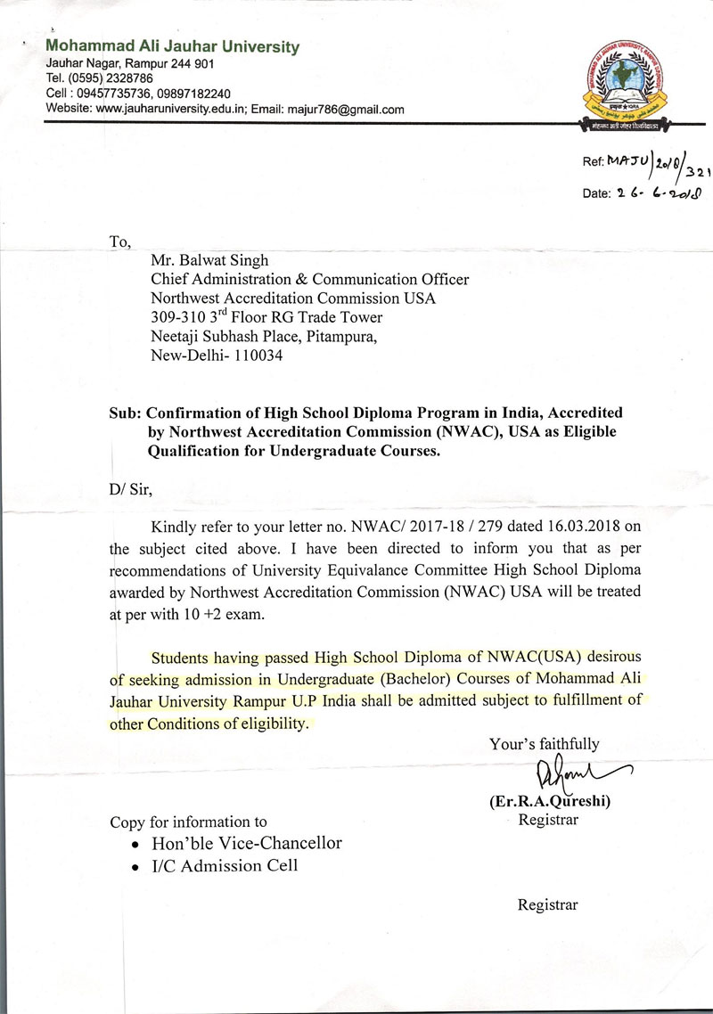 Educational certificates of NWAC, USA are widely recognised and accepted by various national and state universities and education boards across India. Extracts from letters of such universities/boards are available state-wise below.